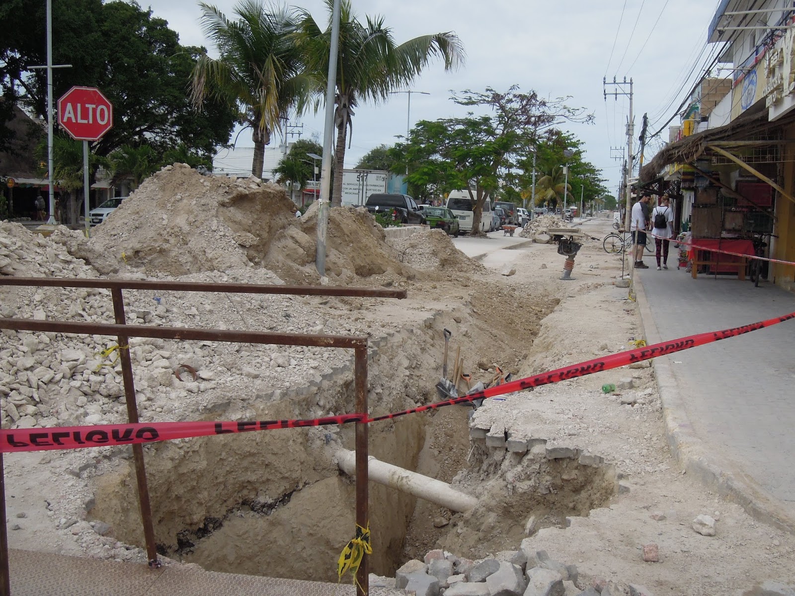 The beach may only be a six mile bike ride from from our hotel but with sidewalks and bike trails under continuous construction, it is not an easy bike ride. Each of the 3 years we have stayed in Tulum it has been like this. Fortunately Howlita is on a side street, far enough away from the dust and daytime racket. There has been some lively cantina music at night, but it is mostly a peaceful place to stay. On Sunday night as I walked home from church there were firefighters, police and an ambulance all around this hole. Someone had fallen into it! It must've been a bad accident because it took a LONG time and a lot of people to rescue whoever it was. BTW, church was very strange even though it was named Our Lady of Guadalupe and was Roman Catholic, it was nothing like OLG at home!